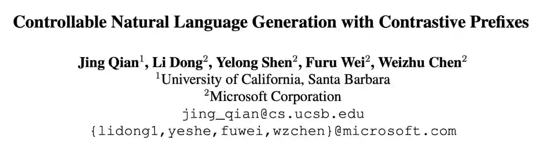 为了指导大型预训练语言模型的生成,之前的工作主要集中在直接微调语言模型或利用属性分类模型来引导生成。Prefix-tuning (Li and Liang, 2021) 提出通过训练前缀(一个小规模的连续向量)来替代在下游生成任务上进行的微调。受此启发,研究员们在本文中提出了一种用于控制 GPT2 生成的新型轻量级框架。该框架利用一组前缀来引导自然语言文本的生成,每个前缀都与一个被控制的属性相对应。