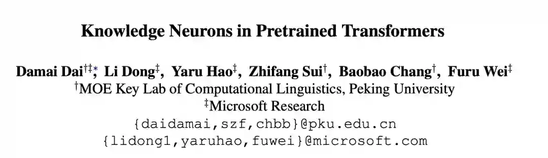 近年来,大规模预训练语言模型被证明拥有较好的回忆预训练语料中所暴露的知识的能力。但现有的知识探针工作,如 LAMA,仅仅关注评估知识预测的整体准确率。本文试图对预训练语言模型进行更深入的研究,通过引入知识神经元的概念,来探究事实型知识是如何在模型中进行存储的。