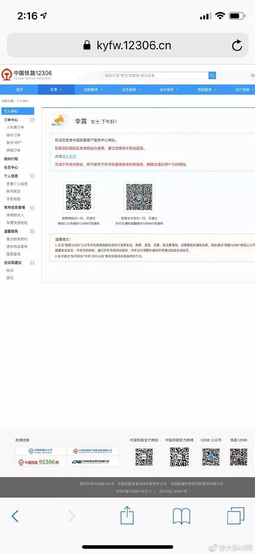 4. 不要使用不明来源的抢票软件购票,尽量使用 12306 官方网站购票