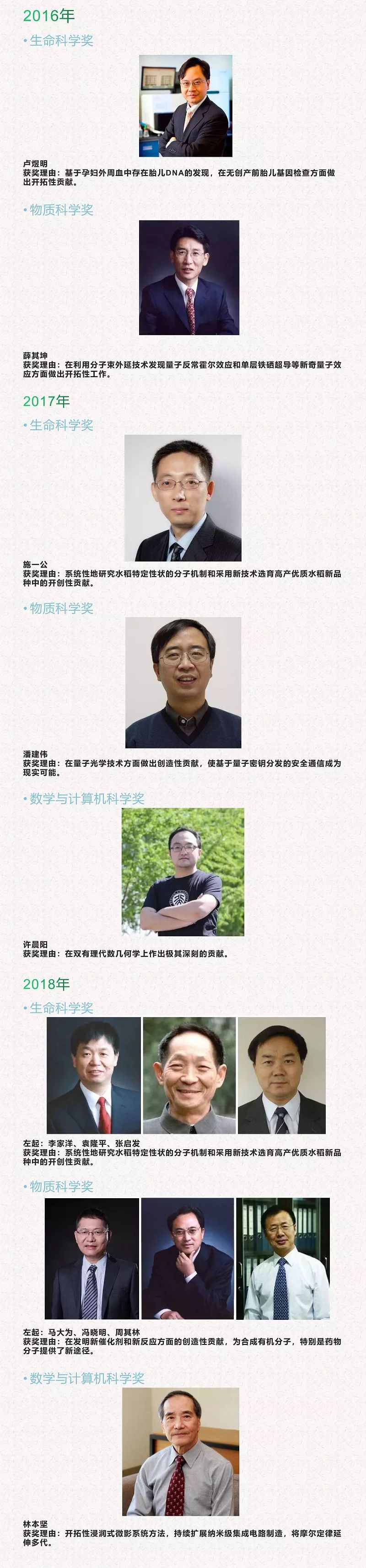 今年共有4位科学家获奖,其中生命科学领域1位,物质科学领域2位,数学与计算机领域1位。