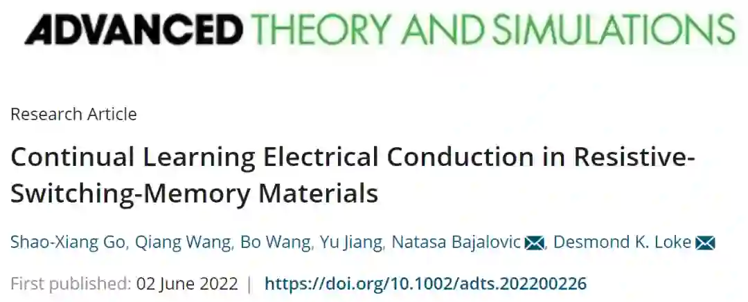 最近,新加坡科技设计大学(SUTD)的一个研究团队设计了一种能够实现高能效持续学习系统的新型模型,研究《Continual Learning Electrical Conduction in Resistive-Switching-Memory Materials》发表在了期刊《先进理论与模拟》上。