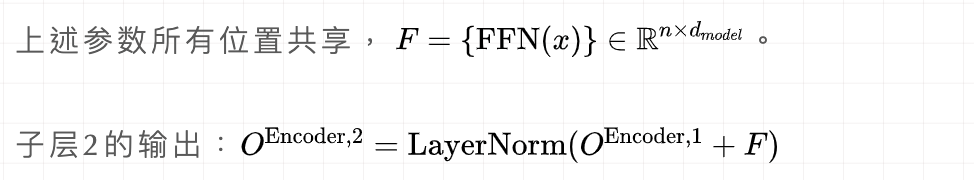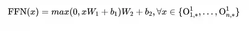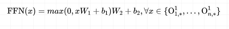 position-wise 前馈神经网络。即上述输出的矩阵每一行代表相应位置的单词经过attention后的表示,每个位置的向量 经过两层的前馈神经网络(中间接RELU激活)得到一个输出FFN。