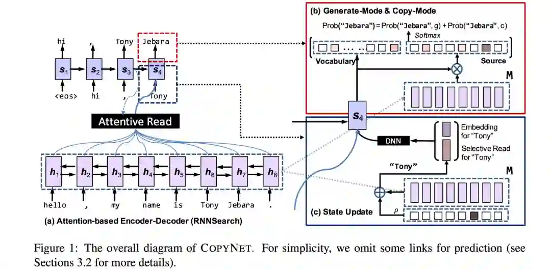 最后是ACL2016的文章“Incorporating Copying Mechanism in Sequence-to-Sequence Learning”,几乎和ACL2017文章思想一样。文章创新点包括3个部分: