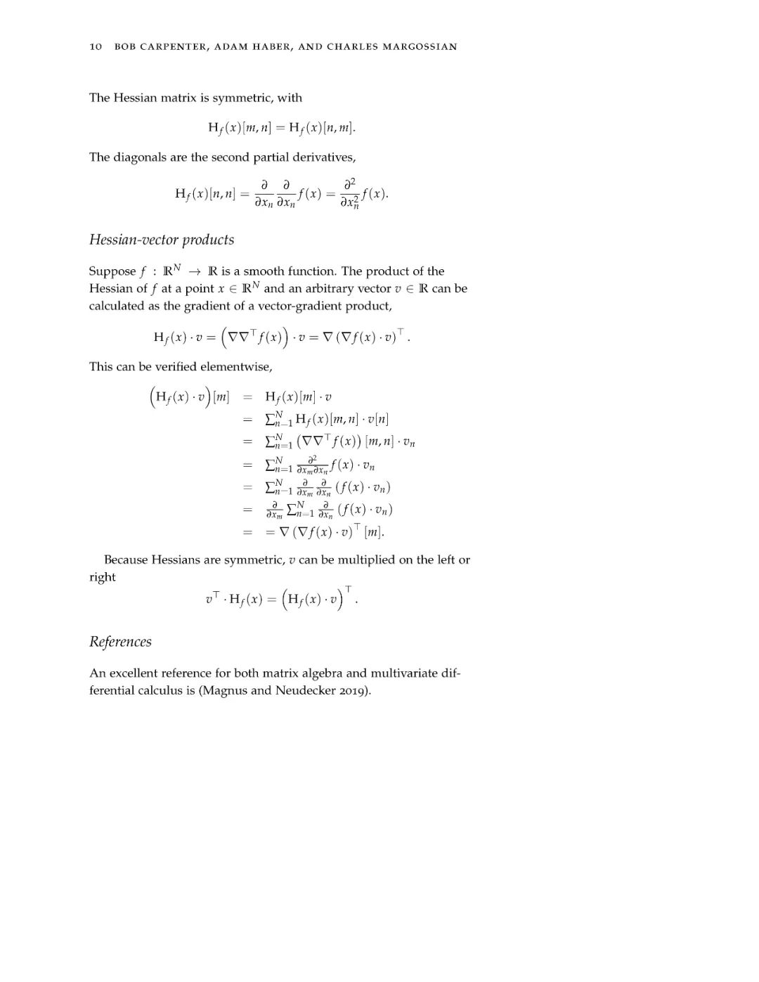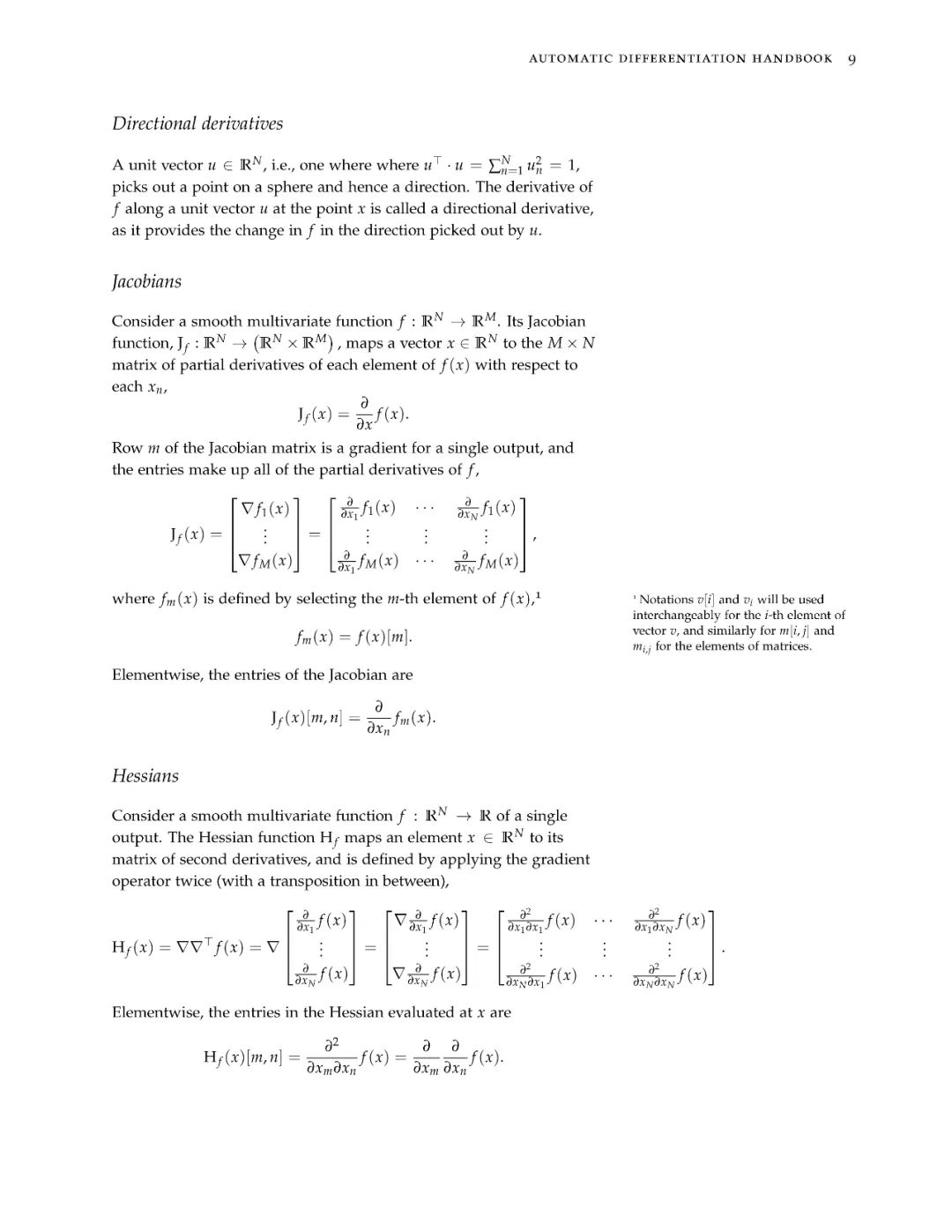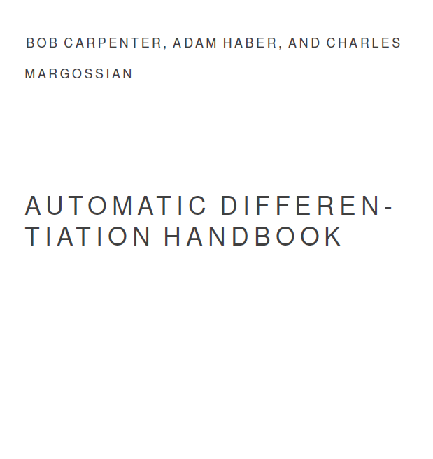 这本书的目标是介绍自动微分的基本算法,以及流行的数学和统计函数的自动微分规则的百科全书式的集合。