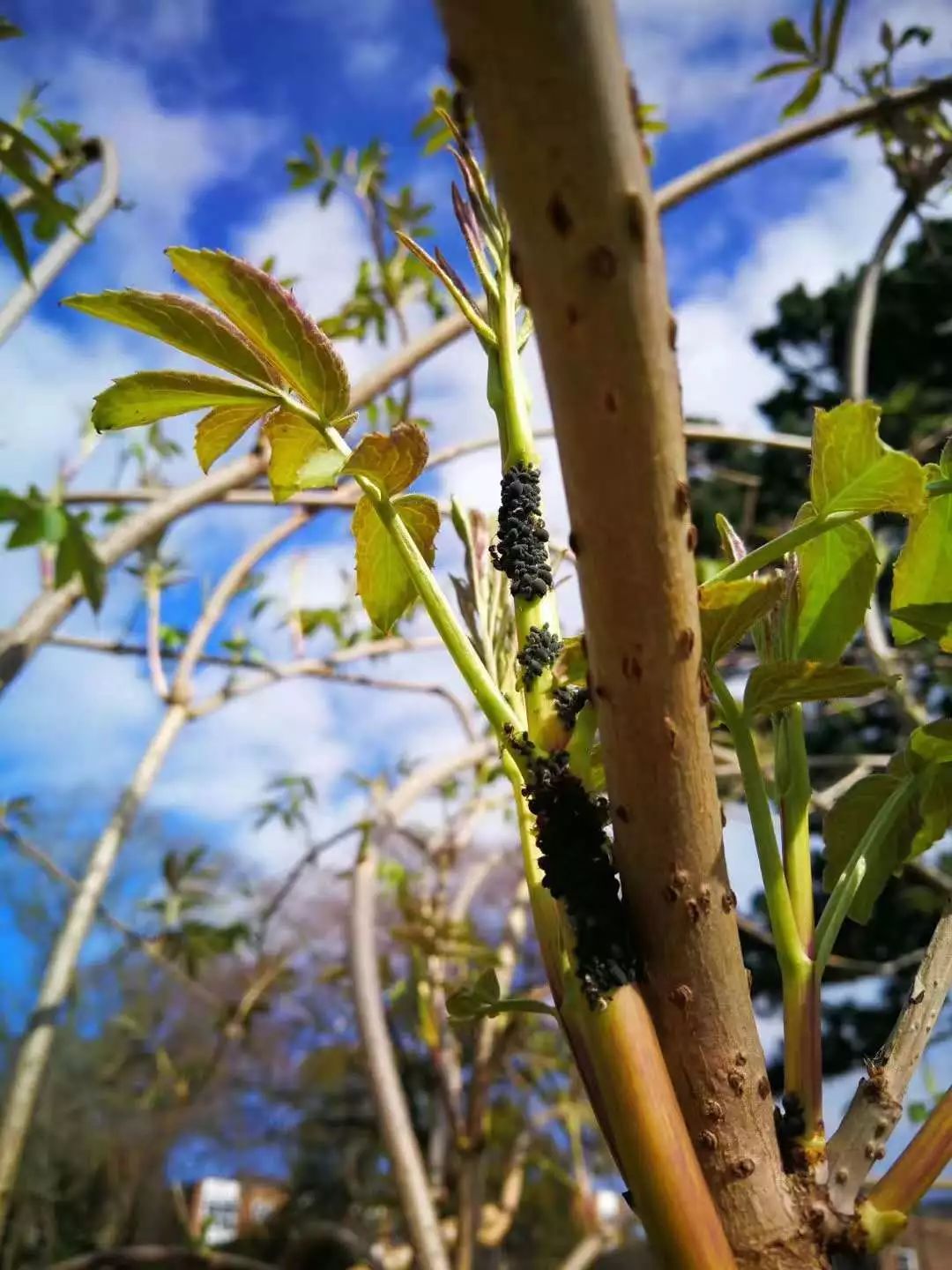 寄生在接骨木上的接骨木蚜(Aphis sambuci),与蚂蚁之间形成了互利互惠的共生关系 | 江南蝶衣