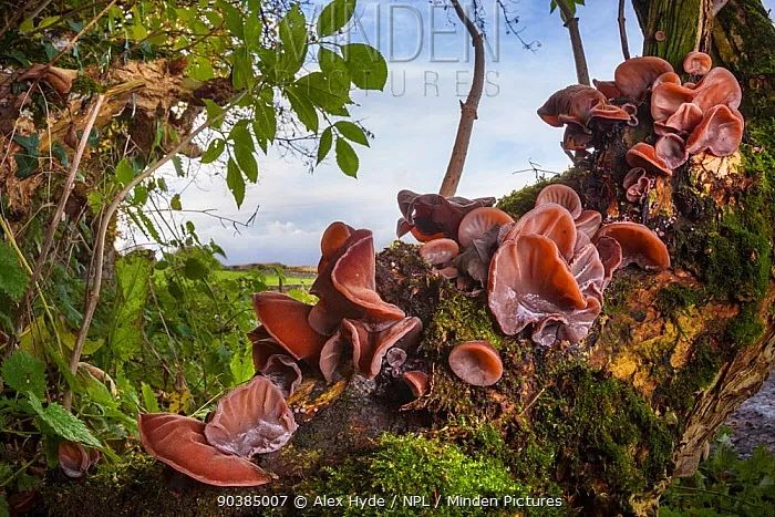长满了黑木耳子实体的西洋接骨木 | Alex Hyde/NPL/Minden Pictures