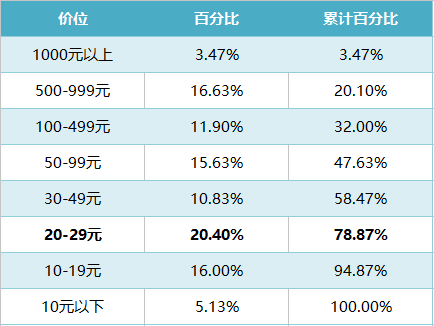 ►最低烟草价格区间频次占比
