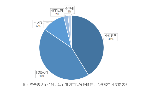 《报告》显示,总体来看,绝大多数被访者认同吸烟对身体造成系列伤害,其中“非常认同”的占比为41.17%,“比较认同”的占比为43.33%,合计超过80%,可以说,经过多年的控烟宣传,大部分国内居民都能认识到吸烟的危害,控烟社会氛围比较好。