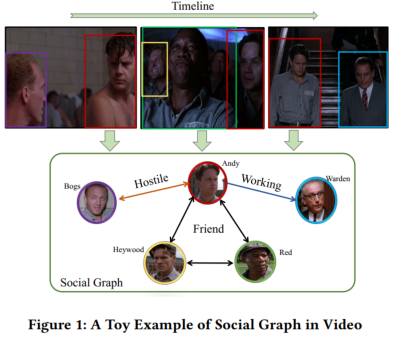 视频中人物的社交关系是视频理解的重要基础之一,它既可以帮助观众更好地理解视频内涵,也将支撑许多视频相关的应用,如视频标注、视频检索和视觉问答等。传统的方法主要分析可由视觉内容直接体现的空间或动作关系等,很少涉及到更高层的语义信息,如视频中人物社交关系图的生成。与此同时,现有的视频分析工作主要针对人工剪裁的富含语义的图片或短视频,但是在现实场景的长视频中,往往却包含着大量与人物关系无关的信息,不仅场景和人物频繁切换,社交关系的呈现方式也更为复杂。