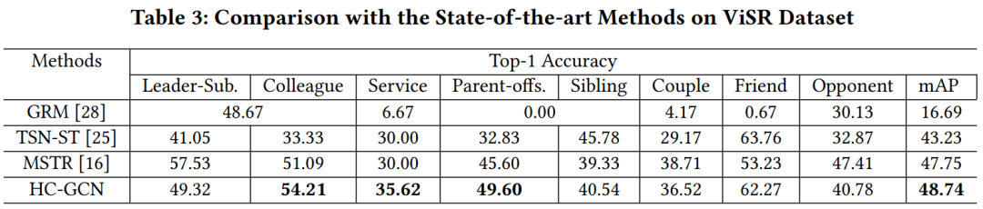 实验结果证明了我们的HC-GCN模型的有效性,同时,也印证了通过社交关系图生成方式来建模社交关系识别任务是一条可以探索的途径。