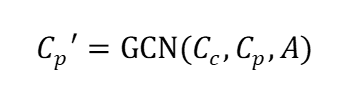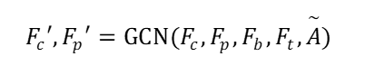其次,使用图卷积神经网络来相互传播节点的信息,从而在帧级别的子图上丰富人物和人物对之间的表征,单层的图卷积层的操作表示为: