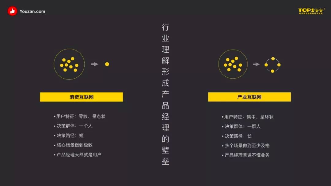 对于有赞而言也是如此,过去在C端产品非常优秀的产品经理,在进入有赞之后,可能两三个月都没法很好的进入状态。对于他们来说,很多过去的工作方法和理念都需要抛弃,从更多的角度理解产品设计这件事,掌握更多关于SaaS产品的设计方法和理念,才能够更好的适应这个环境和过程。