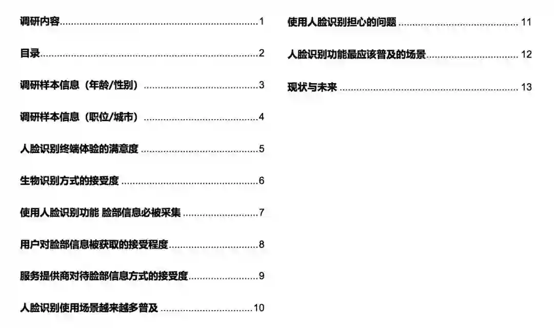 此份调查报告内容涵盖人脸识别技术的应用场景、用户感受等,以及人脸数据的使用方式,这些都是产品设计和开发过程应该倍加重视的问题。