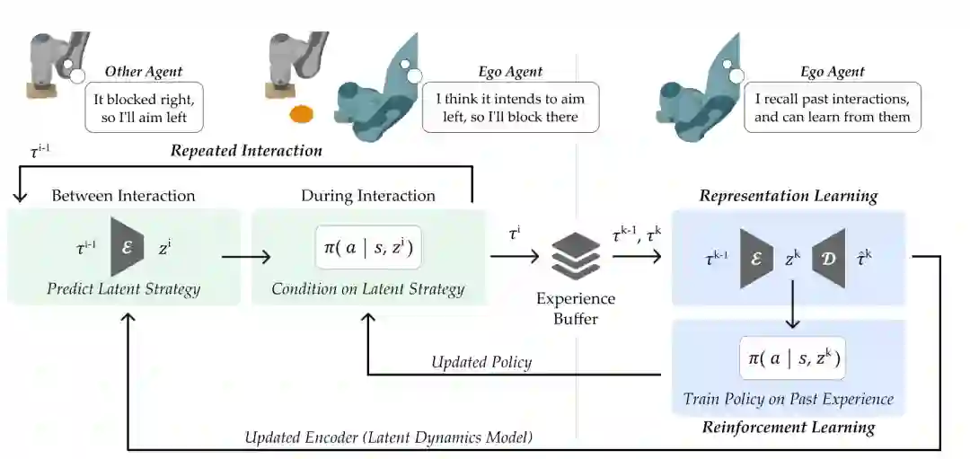 我们提出了一个基于强化学习的学习框架来学习一个智能体策略的潜在表示,其中自智能体识别其行为与另一个智能体的未来策略之间的关系。
