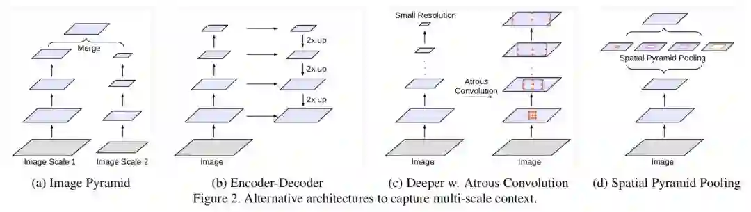 DeepLabv3 论文比较了多种捕获多尺度信息的方式: