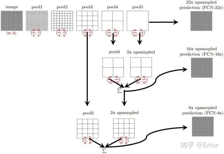对于FCN-16s,首先对pool5 feature进行2倍上采样获得2x upsampled feature,再把pool4 feature和2x upsampled feature逐点相加,然后对相加的feature进行16倍上采样,并softmax prediction,获得16x upsampled feature prediction。