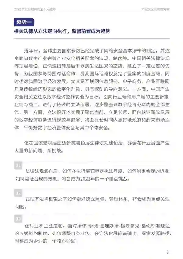 行业普遍关注的零信任也有望成为产业安全下一轮爆发点,2022年,零信任产品的探索将基于客户的需求更重实效,以解决现实诉求为目标获取市场。反对零信任概念的泛化、滥化和概念化也将会成为行业共识。