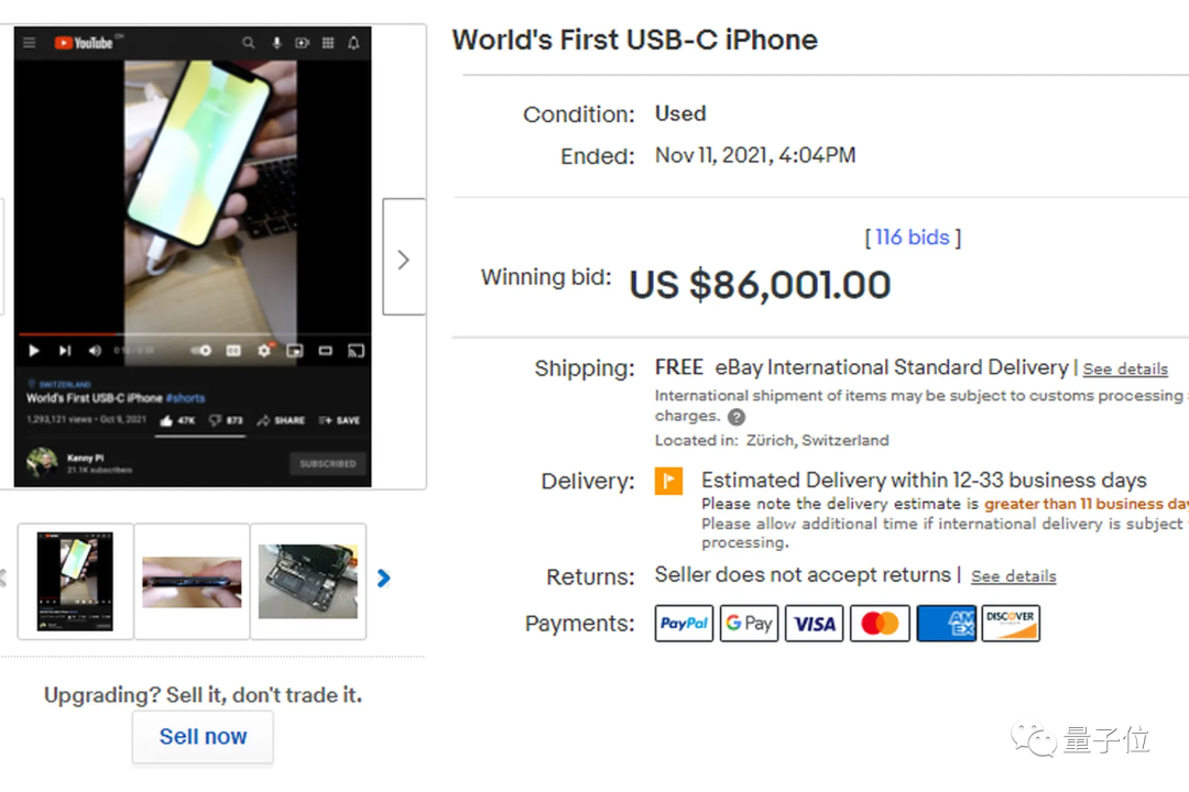 因为Kenn之前做的那款只换接口不防水的iPhone在eBay上拍卖时就拍到了86001美元,而且还有很多使用限制,例如不能更新,不能格式化等等。