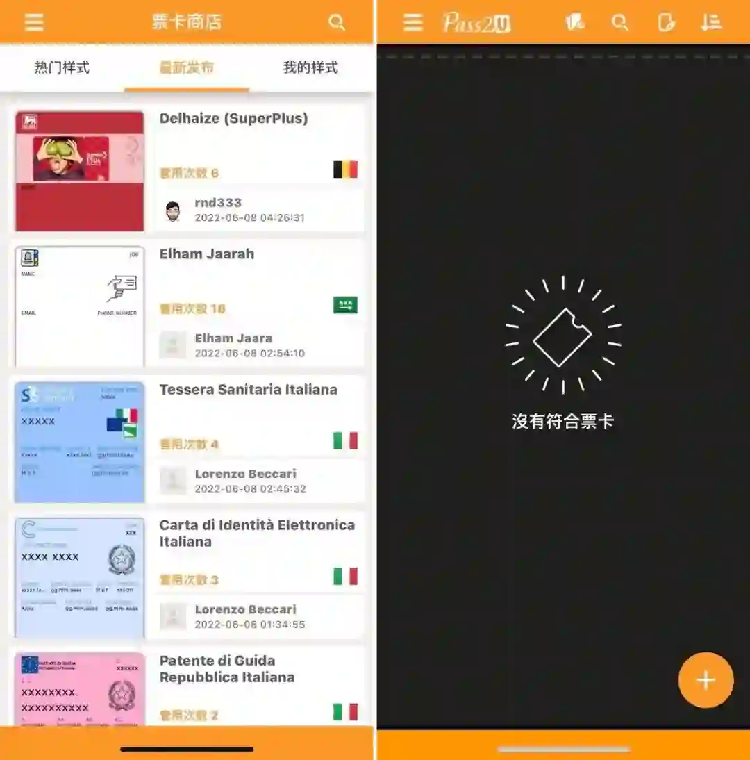 在移动端 Pass2U 的主界面点击右下角的加号按钮,即可开始创建 Wallet 票卡。Pass2U 支持扫描、输入或提取现有票卡照片中的条码来快速套用样式,除此之外,如果选择「套用票卡样式」,则能在内置的票卡商店中查找喜欢的票卡样式进行定制和编辑,没有任何平面设计功底的朋友也能快速开始。