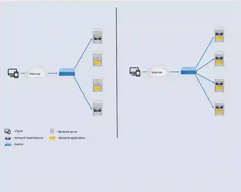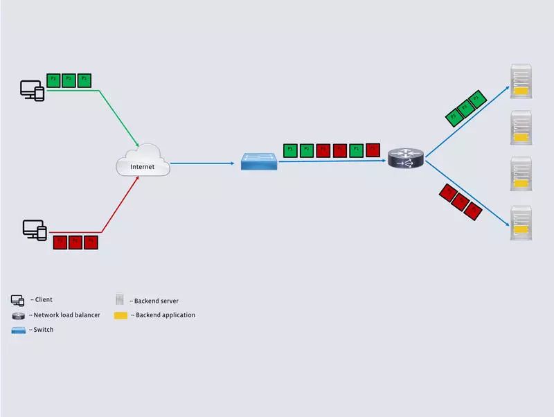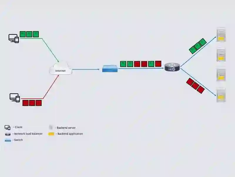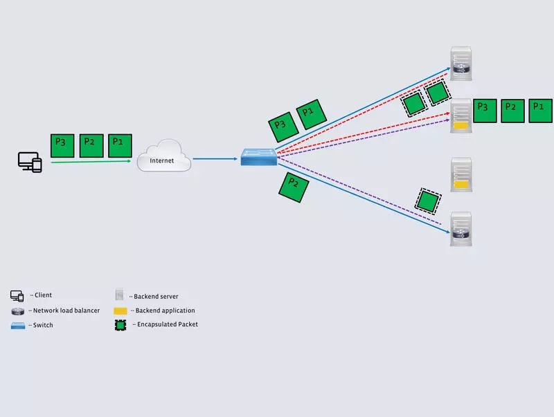 他们为每个位置分配虚拟 IP 地址(VIP),发送到 VIP 的数据包被无缝地分发给后端服务器。在实现分发算法时,需要考虑到后端服务器通常是在应用层处理请求,并且会终结 TCP 连接。于是网络负载均衡器(通常称为第四层负载均衡器或 L4LB)需要负责处理数据包方面的问题。