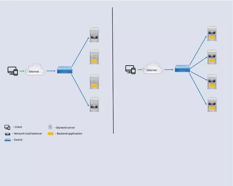 图 1:网络负载均衡器将来自客户端的数据包发送给后端服务器。