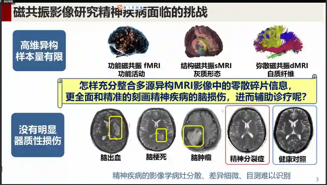 隋婧老师主要面向脑疾病与人工智能交叉前沿,介绍了基于数据驱动的多模态脑影像的生物学标记技术,以及在临床方面的应用。