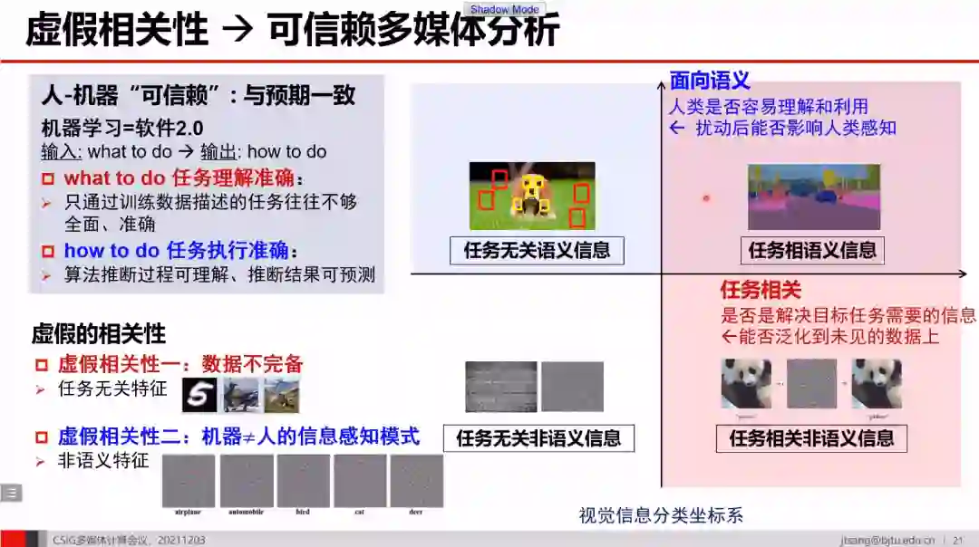 桑基韬老师就机器学习算法在实际场景中问题进行了讨论,提出了“欠蒸馏”和“过蒸馏”的概念,并分享了在可信赖多媒体应用方面的工作。