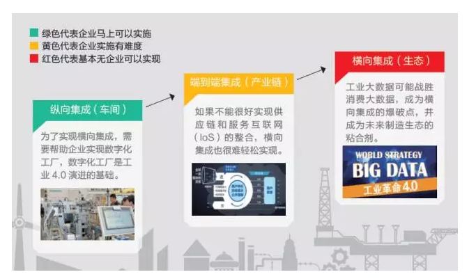 工业4.0将无处不在的传感器、嵌入式终端系统、智能控制系统、通信设施通过CPS形成一个智能网络,使人与人、人与机器、机器与机器以及服务与服务之间能够互联,从而实现横向、纵向和端对端的高度集成,集成是实现工厂智能化的重点也是难点。