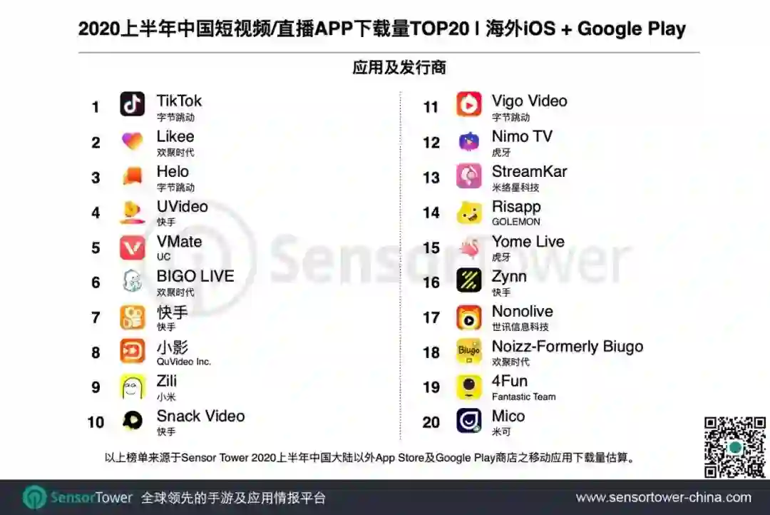 2020上半年出海短视频:TikTok获6亿新用户,Bigo Live收入最高