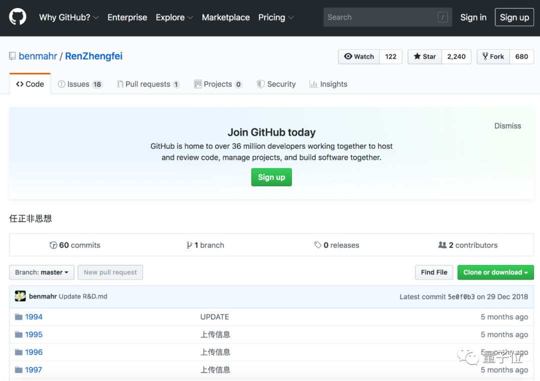 任正非历来的公开发言和公开发表的文章都能引发讨论热潮,这不,有人直接把他的公开言论合辑整理到了GitHub上,在近期华为成为风口浪尖后,这个项目也突然火了,标星一度超过了2200。