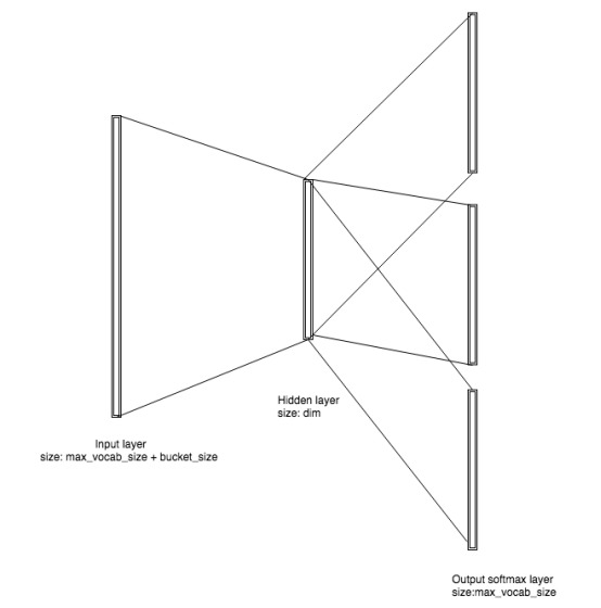 如果我们用-pretrainedVectors参数初始化训练,输入文件中的值将被用于初始化输入层向量。如果未指定,一个维度MxN的矩阵将会被创建,其中M = MAX_VOCAB_SIZE + bucket_size, N = dim。 bucket_size是一个数组的长度大小,这个数组是为所有的ngrams符号分配的。它通过-bucket标志进行设置,默认设置为2000000。