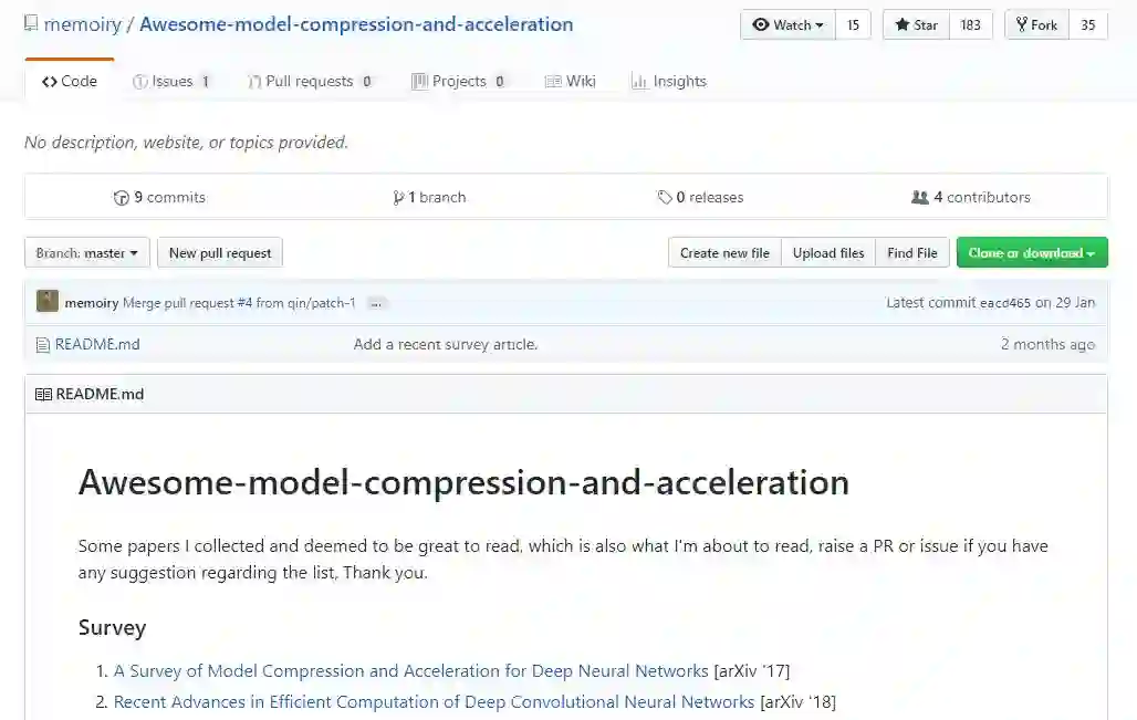 【导读】本文为大家带来了模型压缩与加速的相关资源列表,本资源搬运自GitHub用户memoiry的Awesome-model-compression-and-acceleration。