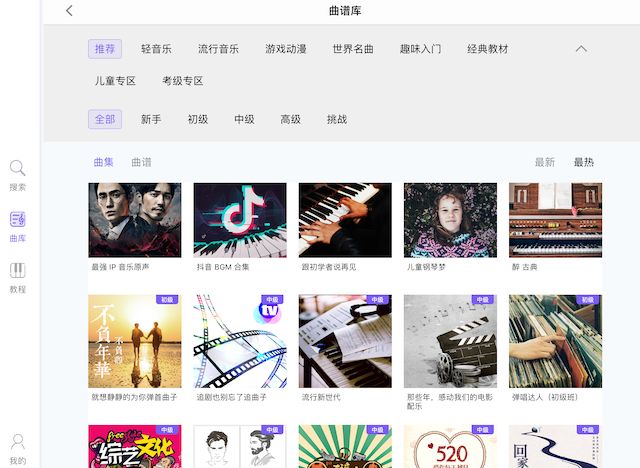 APP的曲库非常丰富,有2万首以上的免费正版曲谱可供你弹奏,还会实时更新。