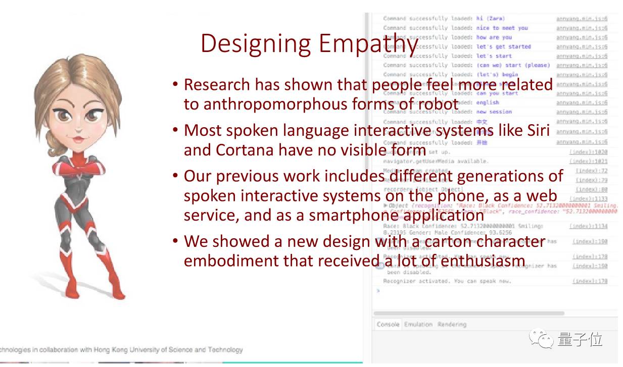 另外一点就是,在很多研究里发现:人类喜欢人形象的机器人。所以我们实验室设计了一个具象的机器人——Zara。Zara跟siri的原理和功能都差不多,不同点在于我们是Task-Oriented Dialog System。