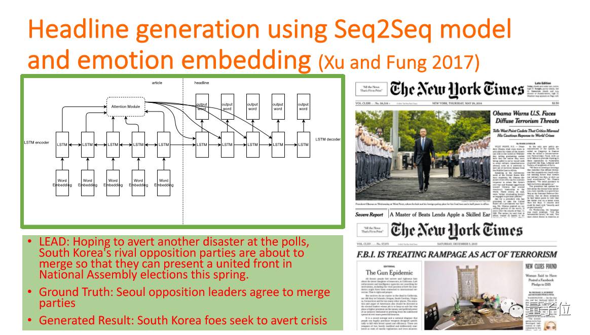 新闻的标题是summarization里比较简单的一个工作,但是后来发现报纸的标题和网上的标题不一样,机器做出来的标题是实实在在的内容总结,而现在很多需要的是有点击率的标题,而这种标题就是带有情感的。
