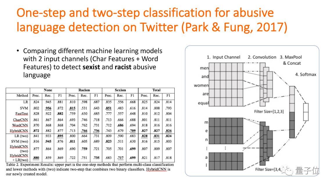 人和机器人是如何打交道的,研究发现有20%-25%的人会说一些不该说的话,也就是abusive language,那么机器人该如何应对。这也是可以用CNN去学的,我们可以用一个step:这个话是abusive还是sexist还是racist等等,或者用两个steps:先知道这个话该不该说,再知道这个话是属于哪一类。