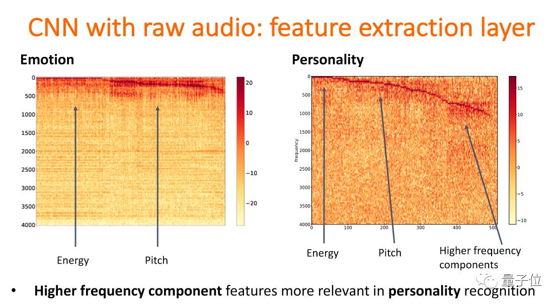 这是一个层次,emotion和personality。从低频到高频,发现在第一层开始的时候是在抽取energy、pitch、frequency等信息。