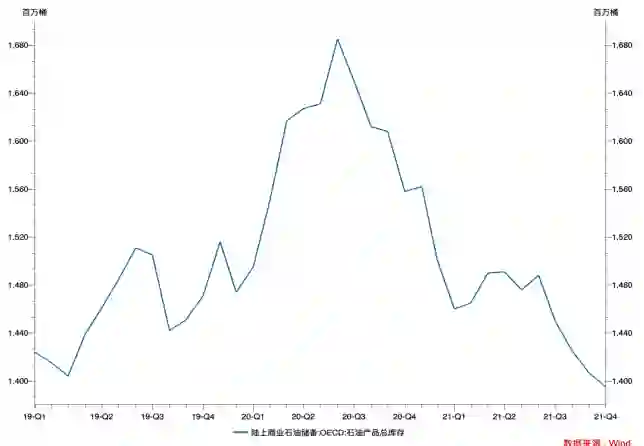 OECD国家陆上商业石油储备持续下降,来源:wind