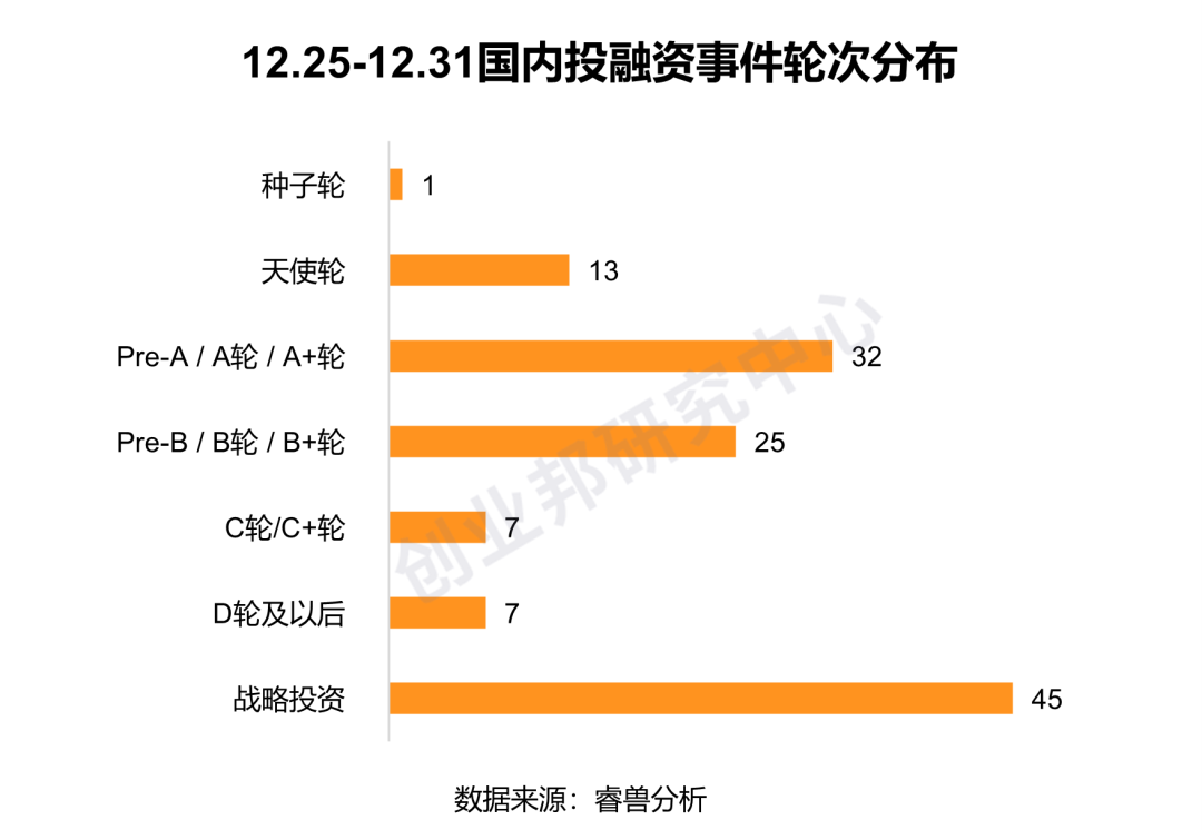 中后期(B轮至D轮及以后)共发生39起;战略投资发生45起。