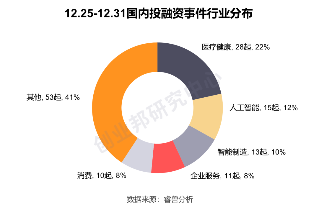 行业领域,其中医疗健康28起,人工智能15起,智能制造13起,企业服务11起,消费10起。