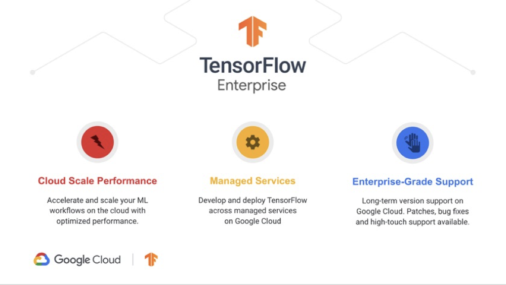 许多企业用户对于 TensorFlow 快速发展带来的 API 版本变化想必是心有余悸。一个好消息是此类用户将由官方团队“兜底”。 TensorFlow 企业版将提供长期的技术支持。