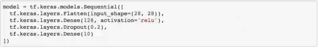 TensorFlow 2.2 在易用性和简化 API 方面做了大量优化。对于新手,可以使用高层封装的 API 实现面向模型编程 (Model Oriented Programming, MOP)。我们以一个典型的 MNIST CNN 模型为例,展示 TensorFlow 2.2 的实现: