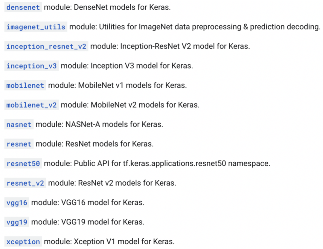 https://tensorflow.google.cn/api_docs/python/tf/keras/applications