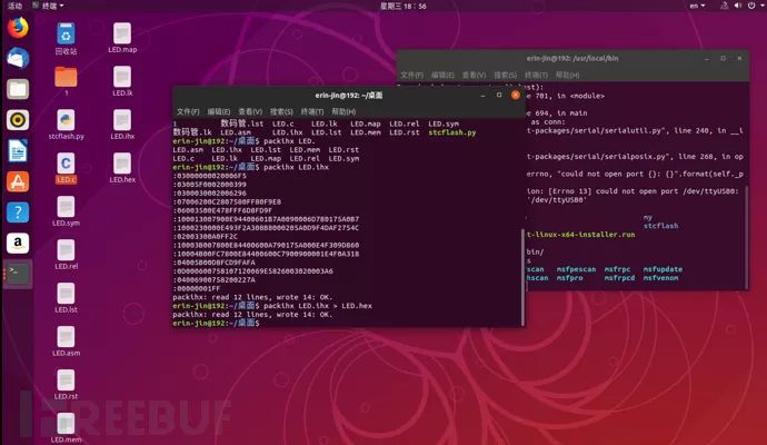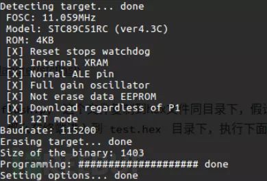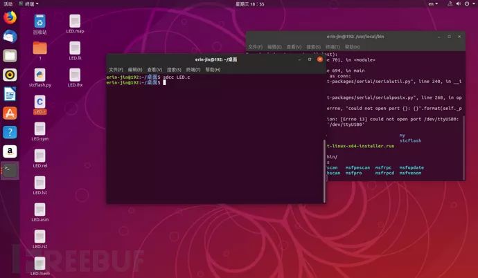这时候我们可以执行1(stcflash.py)这个脚本了,这时候切换到工作目录中,写一个51单片机的程序。在Linux下写的和Windows下写程序会有一些不同的地方。