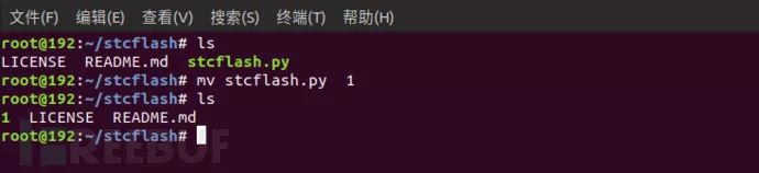解压之后会有一个名为stcflash 的可执行脚本。我把她重新命名了一下,为了方便我直接把他重新命名为1。