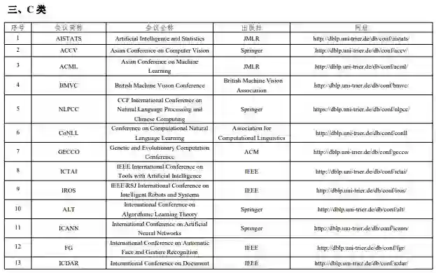 下面是“人工智能”领域的A类、B类和C类国际学术会议: