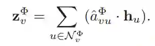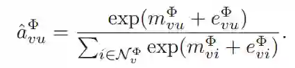 因此,我们可以使用 来屏蔽大量的对抗性/噪声邻居,通过softmax函数得到 :
