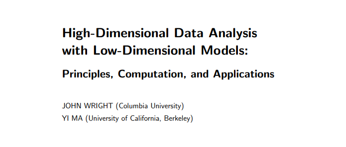 今日凌晨,加州大学伯克利分校电气工程与计算机科学系教授马毅(Yi Ma)宣布其与哥伦比亚大学电气工程系副教授 John Wright 合著的新书《High-Dimensional Data Analysis with Low-Dimensional Models: Principles, Computation, and Applications》开放了 pre-production 版本,读者可以在线下载了。