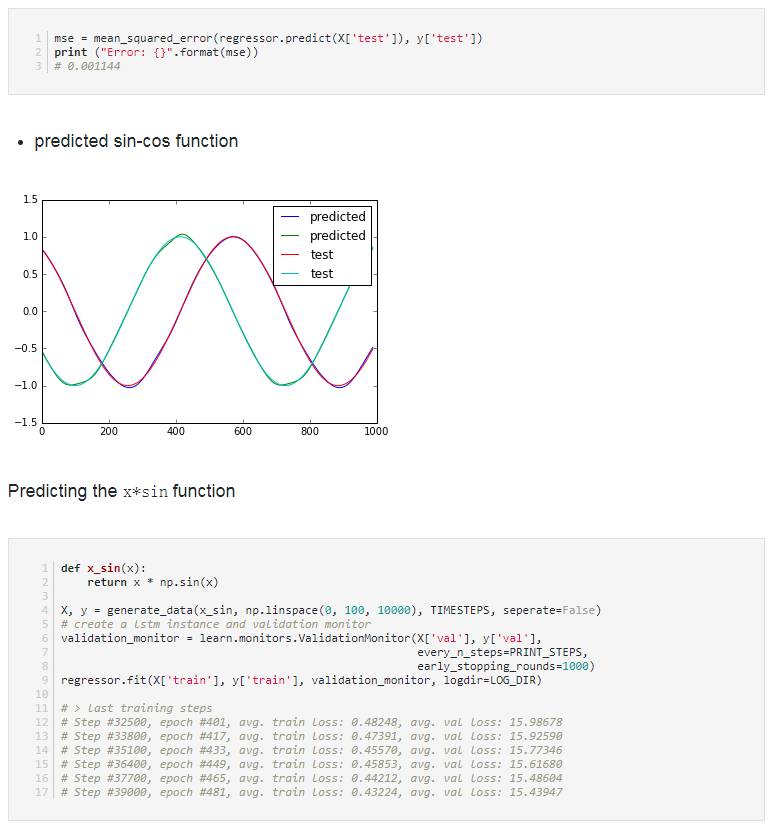 This post tries to demonstrates how to approximate a sequence of vectors using a recurrent neural networks, in particular I will be using the LSTM architecture, The complete code used for this post could be found here. Most of the examples I found in the internet apply the LSTM architecture to natural language processing problems, and I couldn’t find an example where this architecture could be used to predict continuous values.