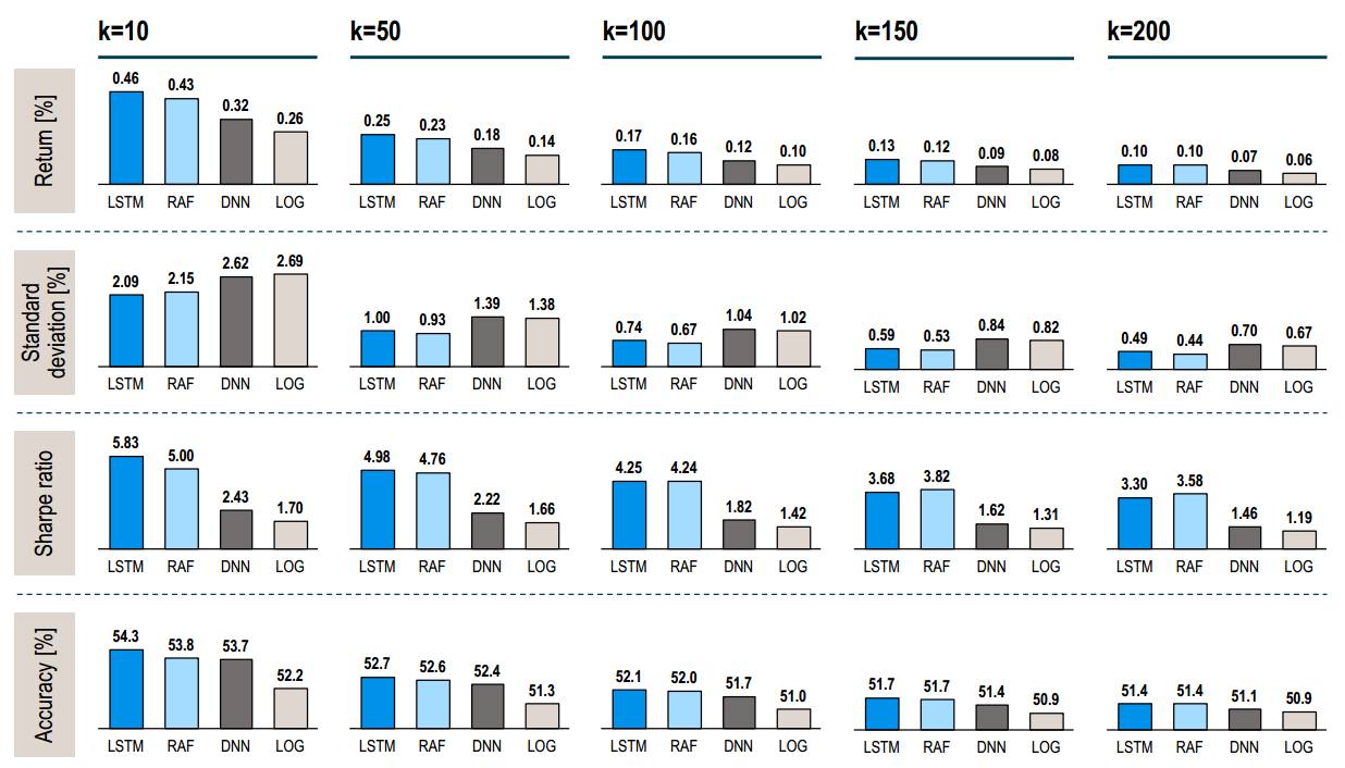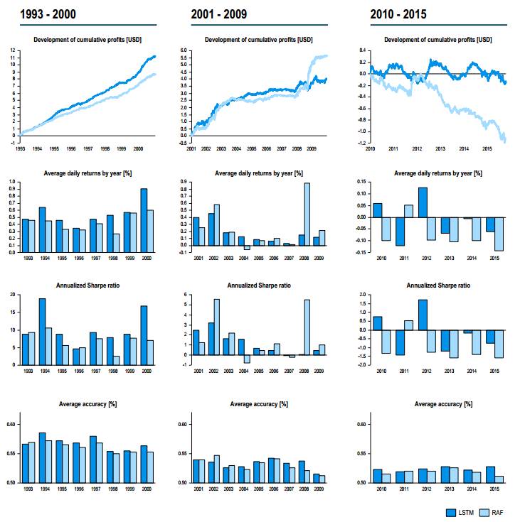 and insignificant results for the large US market and the emerging Brazilian market. When a trading strategy is implemented based on the direction of change, a deep LSTM network vastly outperforms the time series model.